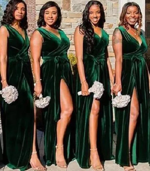 2020 Plus Size African Velvet Green Bridesmaid Dresses In Dark Green Velvet With V Neck And High Split Perfect For Wedding Guests Maid Of Honor And Party Al3934 From Allloves 67 49 Dhgate Com